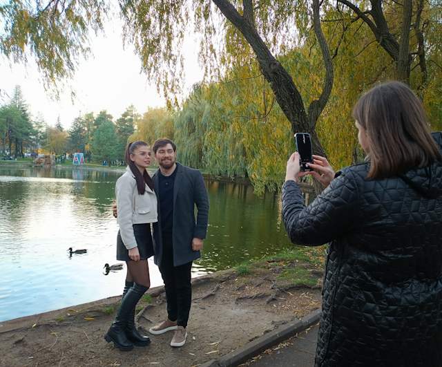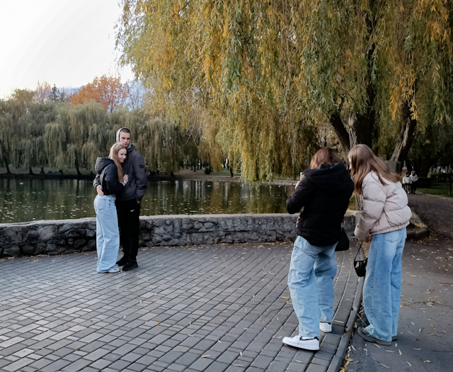 Рівне живе у вирі осені — спокійної, золотої та напрочуд затишної. Особливо людно цими днями у парку Молоді, який рівняни звично називають «Лебединкою». Це одне з найулюбленіших місць для прогулянок. Тут охоче проводять сімейні фотосесії та відпочивають на свіжому повітрі.