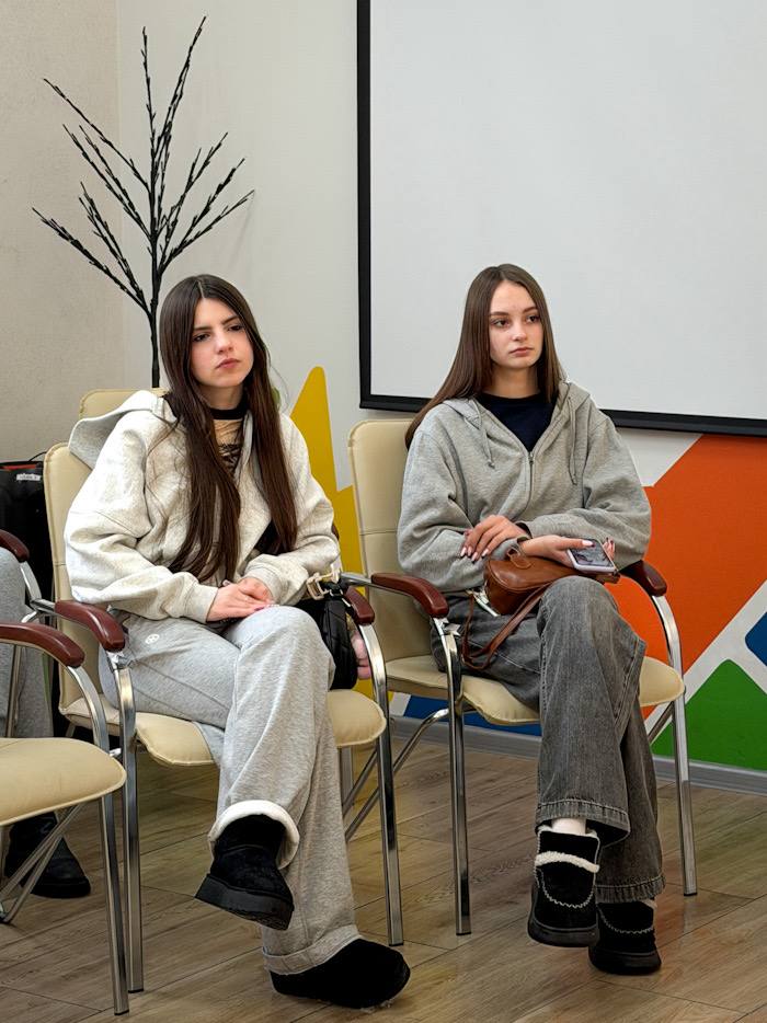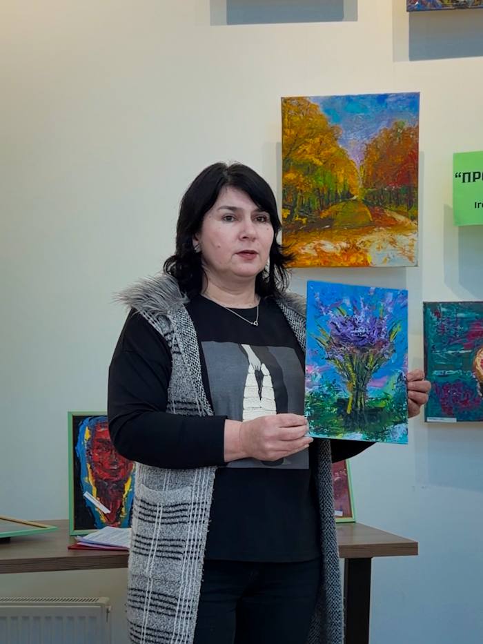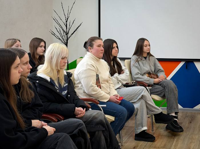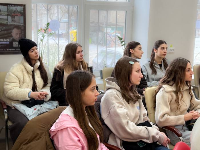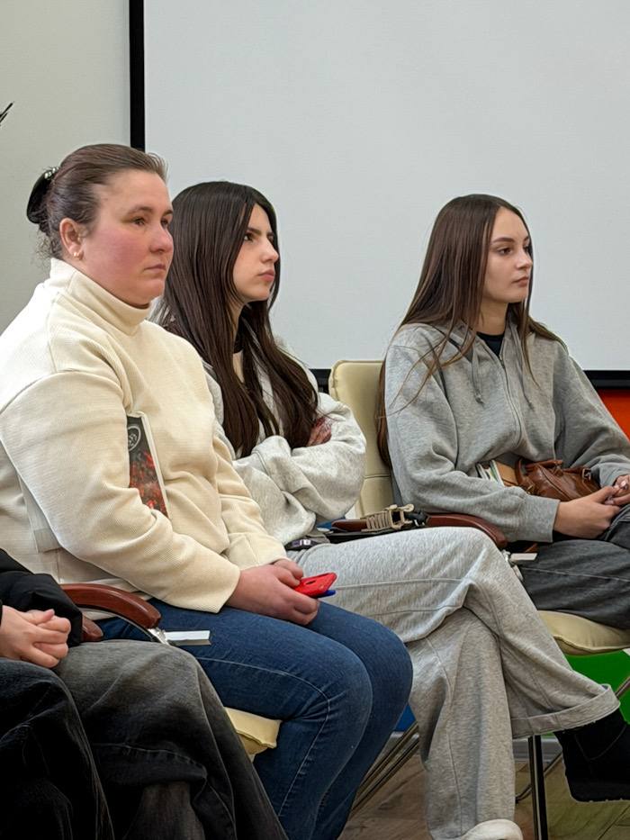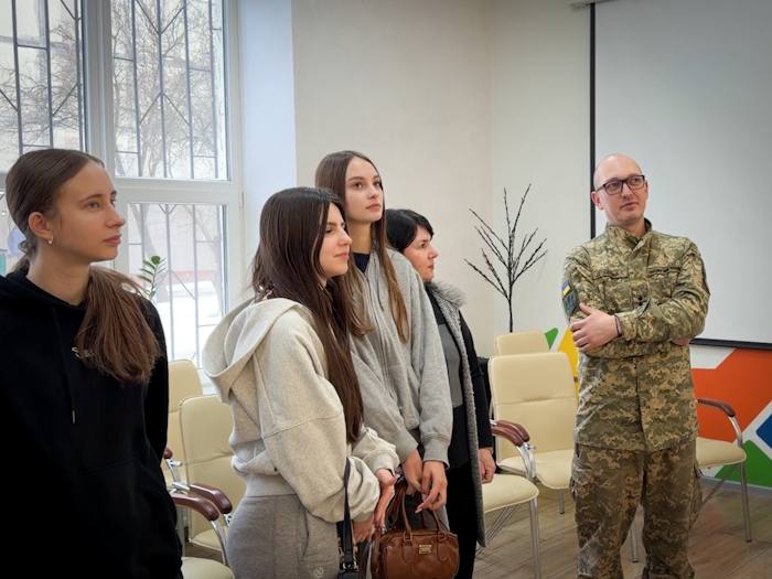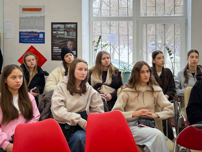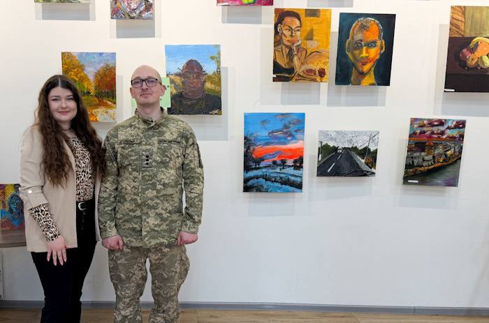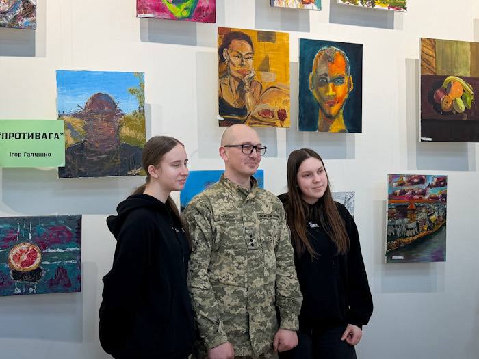 Розмова була відвертою й глибокою — про мистецтво під час війни, силу внутрішньої стійкості та необхідність знаходити власну точку опори. Студенти активно ставили запитання, цікавилися технікою виконання робіт і тим, як поєднувати військову службу з творчістю.