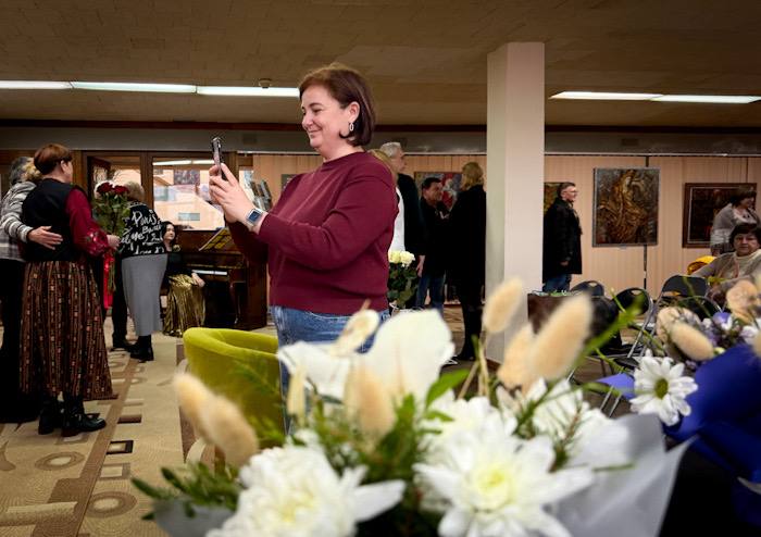 Гості з цікавістю розглядали картини, ділилися враженнями, фотографувалися та вітали художника з ювілеєм. У залі панувала невимушена, майже родинна атмосфера — щира, жива і дуже тепла.
