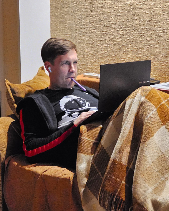 Макс Кідрук за роботою над книгою. Фото Тетяни Кідрук