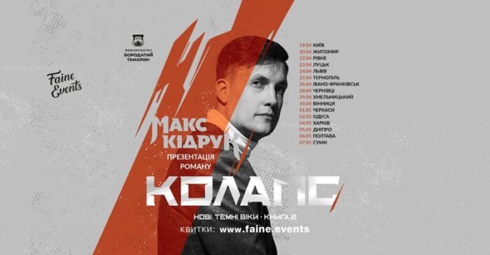 Український письменник-фантаст Макс Кідрук вирушає у всеукраїнський тур на підтримку другої книги циклу «Нові Темні Віки» — роману «Колапс». Одна із зустрічей із читачами відбудеться у Рівному.
