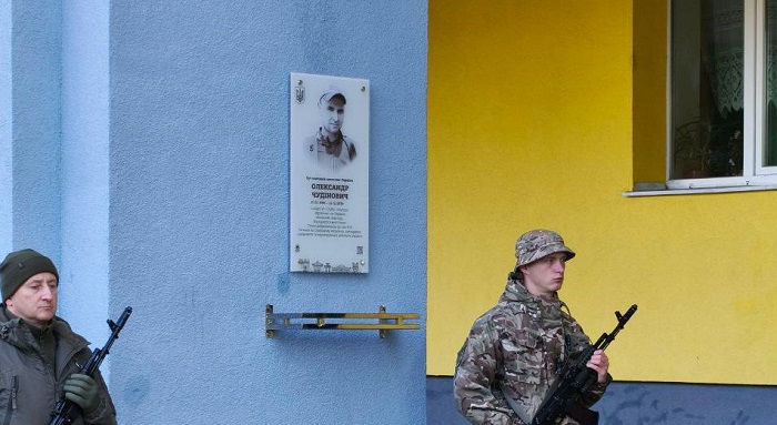 На фасаді Квасилівського ліцею урочисто відкрили меморіальну дошку на честь загиблого захисника України Олександра Чудіновича.