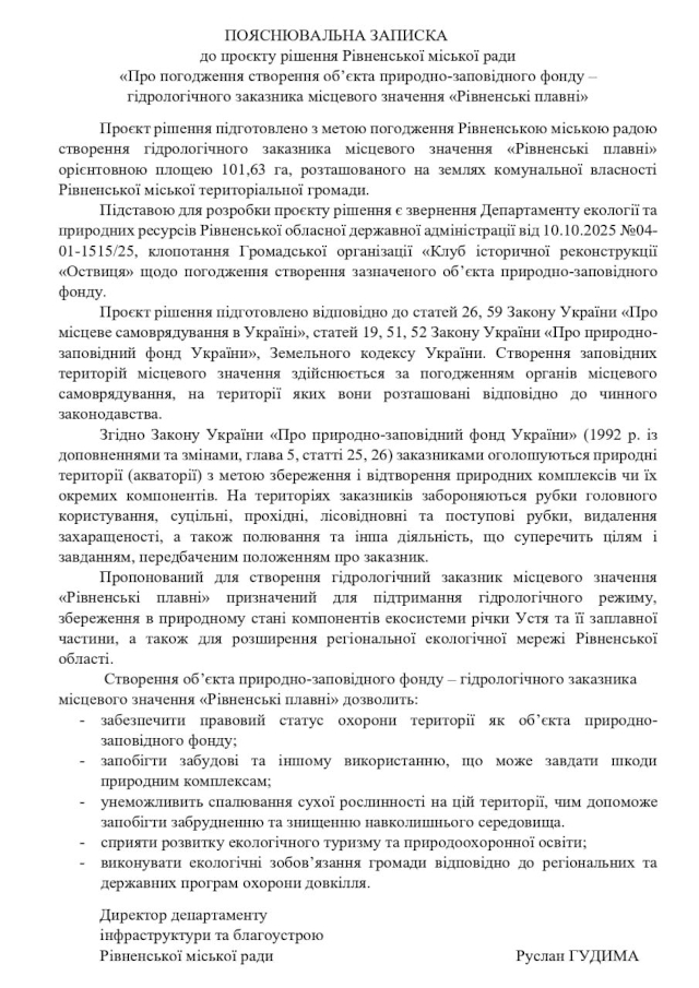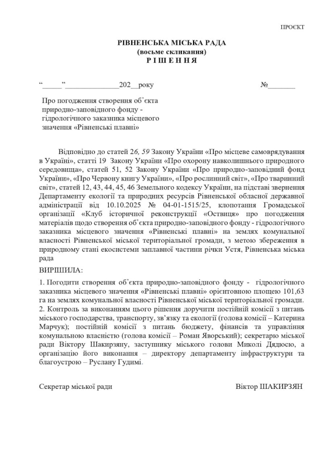 Вже на цю сесію Рівнеради (20 листопада) виноситься питання щодо погодження створення гідрологічного заказника місцевого значення «Рівненські плавні».