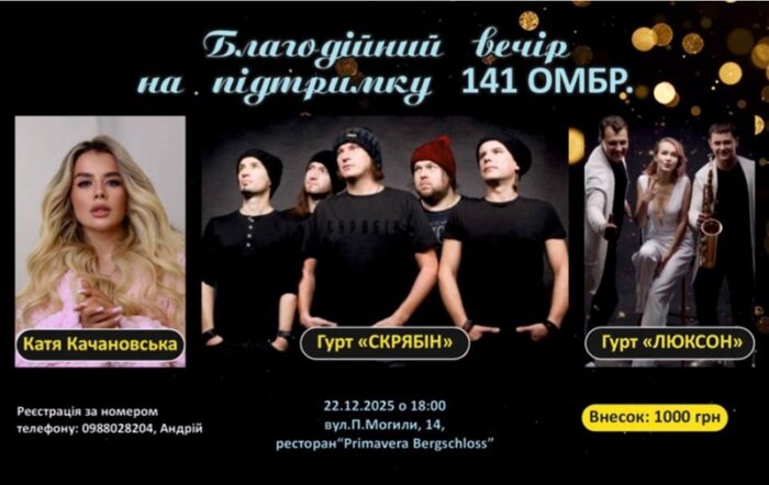 22 грудня у Рівному пройде благодійний вечір на підтримку військовослужбовців 141-ї бригади. Захід об’єднає музику, щирі емоції та спільну мету — допомогу нашим захисникам.