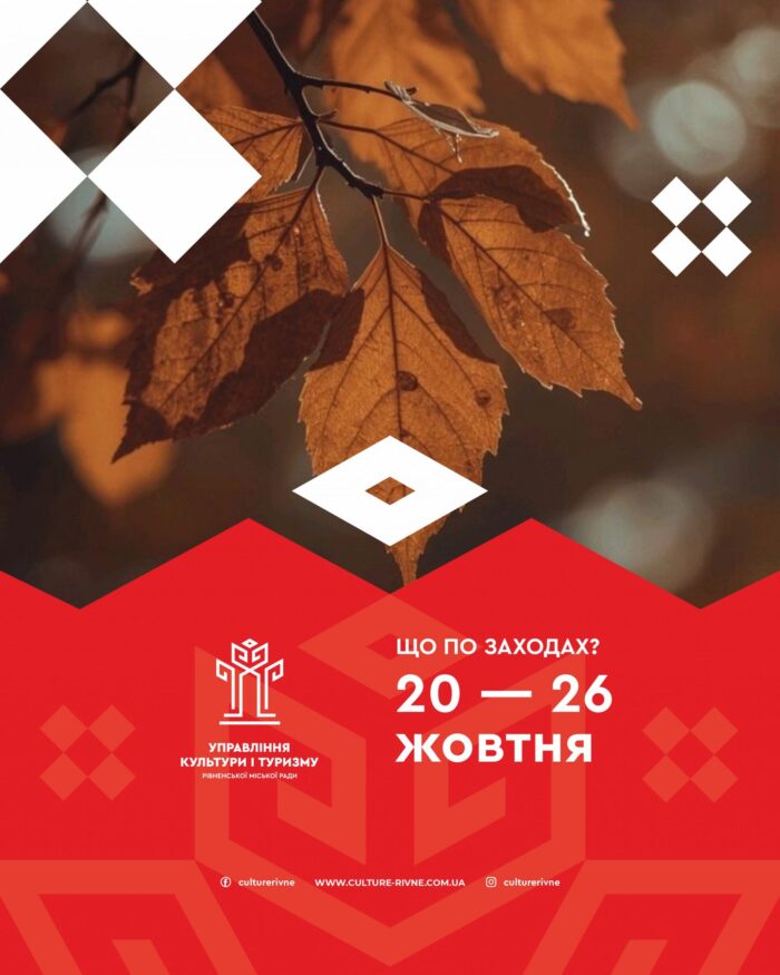 Афіша заходів у Рівному 20-26 жовтня 2025 року