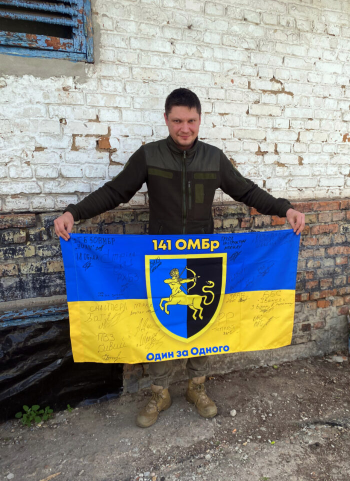 - Прапор України з шевроном та підписами бійців 141 ОМБр та відомого реп-виконавця Skofka, котрий також буде виступати на святі;